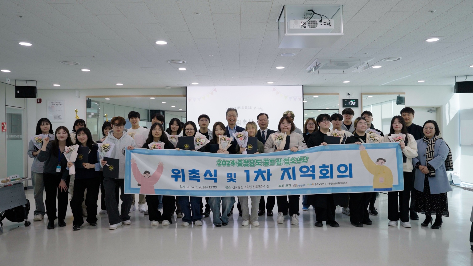 20일 충청남도진로융합교육원에서 '2024년 충청남도 꿈드림 청소년단 위촉식'을 개최하였습니다. 이날 위촉식은 학교 밖 청소년 23명에게 충청남도지사 명의의 위촉장을 수요하고, 임원진 선발과 연간 활동 방향을 논의하는 등의 시간을 가졌습니다.