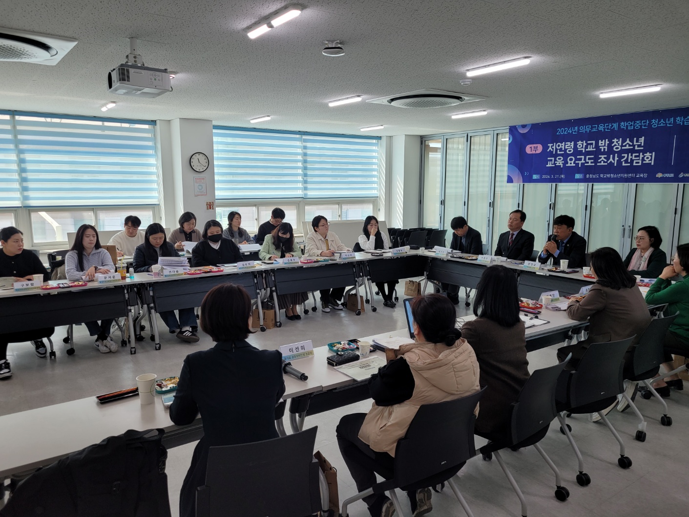 간담회에는 양경모 충청남도의원, 이종규 충청남도 여성가족정책관, 충청남도 내 학교밖청소년지원센터 사업 담당자 등 20여 명이 참석한 가운데