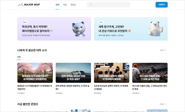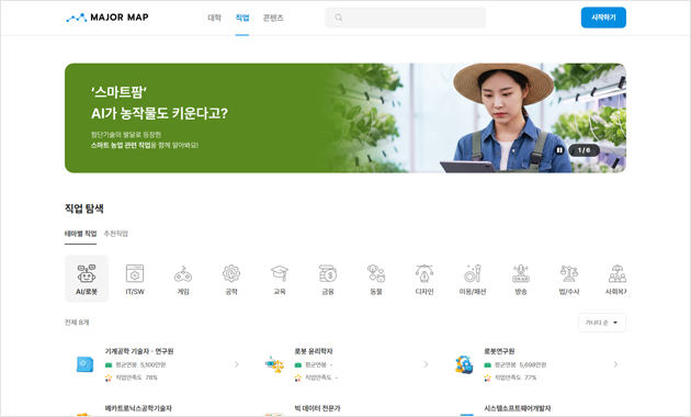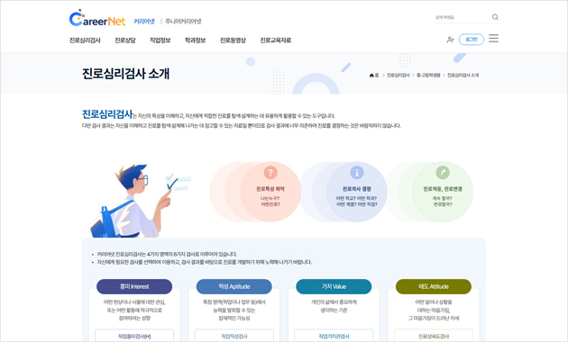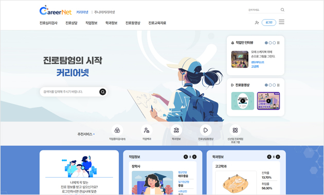 진로검사, 직업 및 학과 정보를 제공해요.